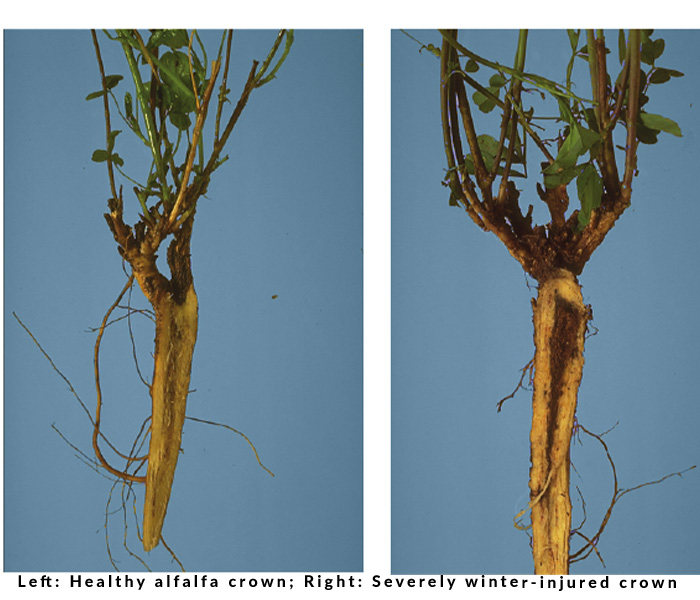 If 50% or more of the field is damaged, consider rotating to corn or forage sorghum and take advantage of 80–140 lbs. of nitrogen credit from the previous alfalfa crop. This not only improves soil fertility but also helps break pest and disease cycles.